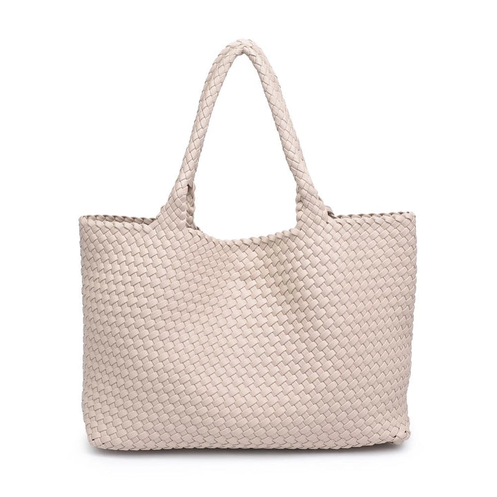 The perfect tote for all of your needs! Crafted with luxurious and lightweight vegan leather, this bag features a woven all-over and a magnetic closure to keep your belongings safe and secure. The inside is unlined and comes complete with an added zipper pouch for some extra storage that can also be used as a hanging accessory.